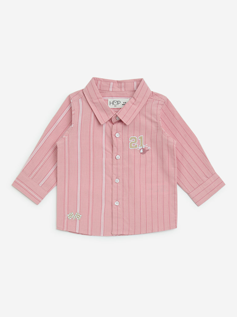 HOP Baby Pink Stripe Printed Cotton Shirt