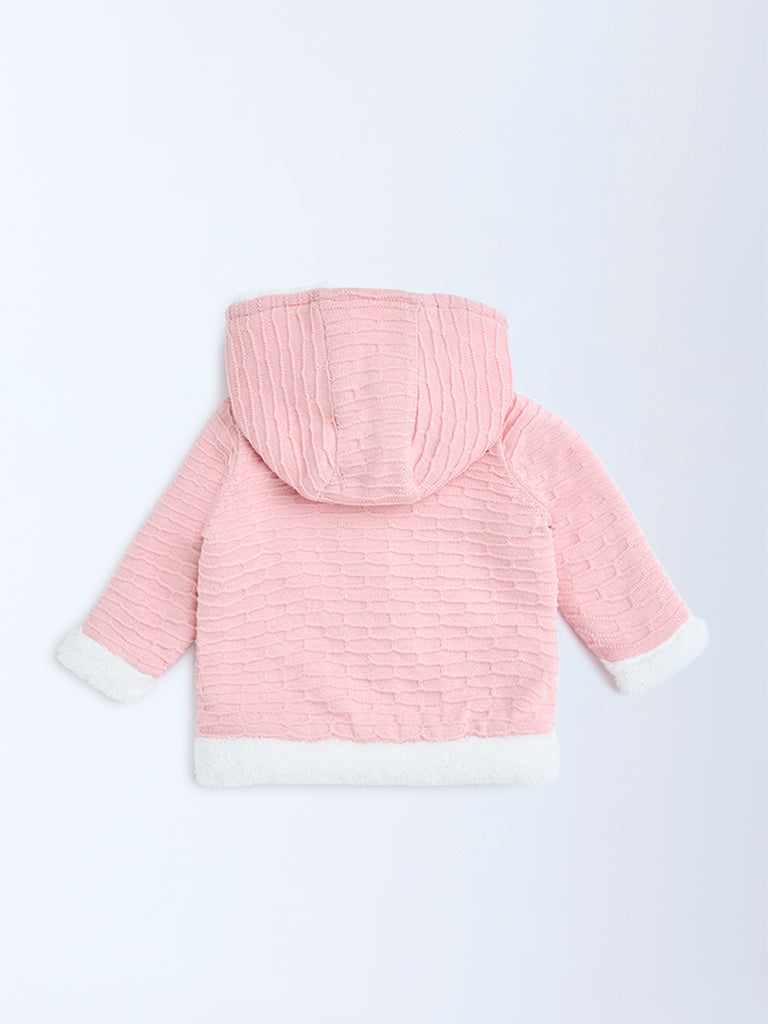 HOP Baby Pink Textured Cotton Hooded Sweater