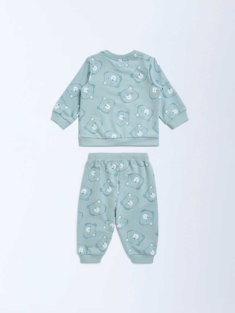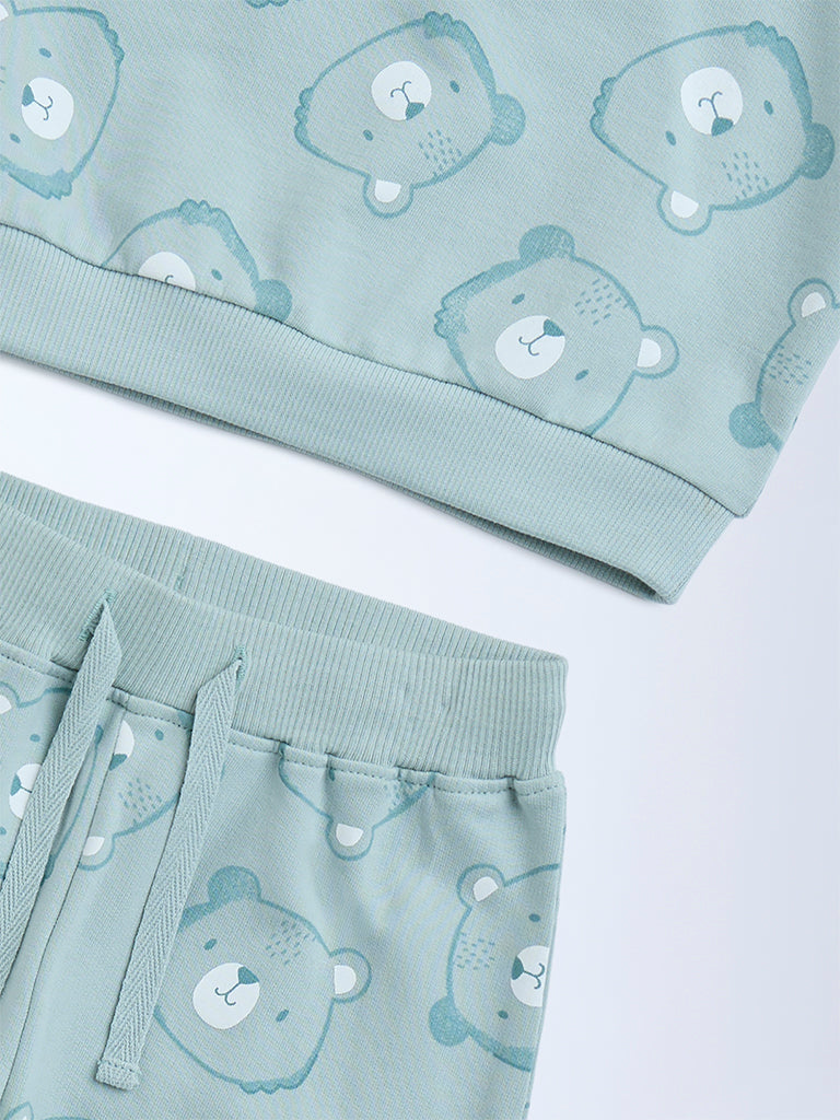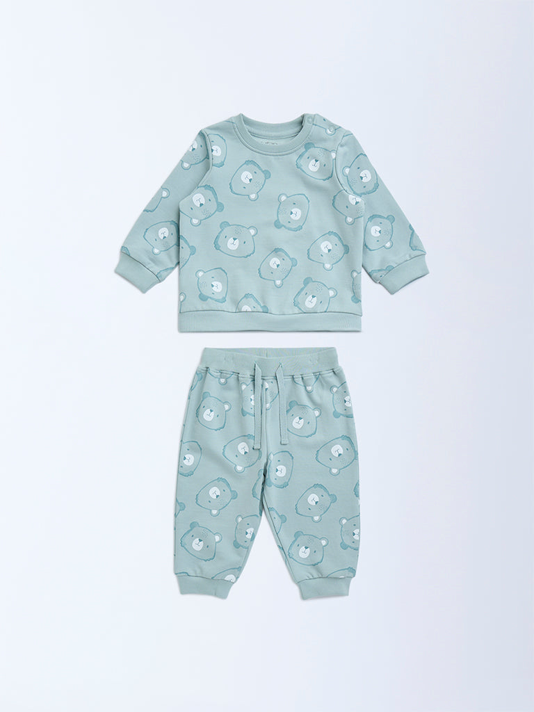 Let playful bears keep your little one company with this sage set from HOP Baby. Spun from pure cotton for gentle comfort. the t-shirt is styled with a crew neck and full sleeves to keep them snug. Paired with matching pants featuring a smooth elastic waistband and adjustable drawstrings. this set is as cozy as it is adorable.