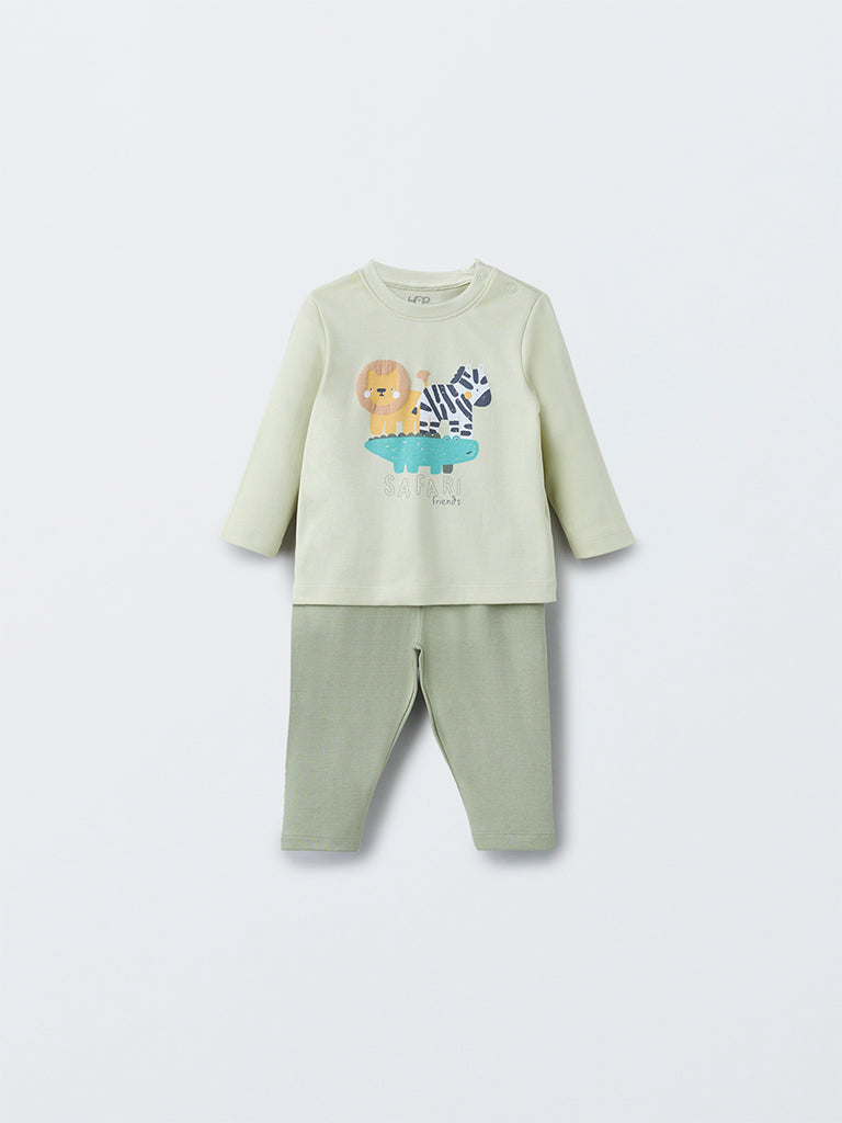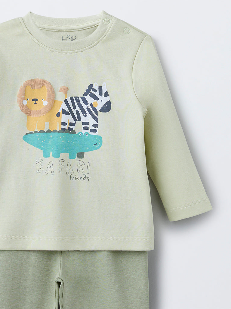 HOP Baby Sage Animal Design Cotton T-Shirt with Pants Set