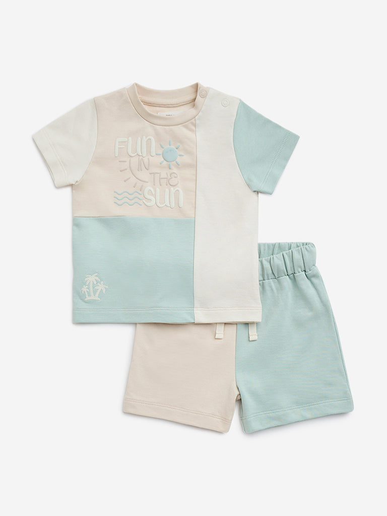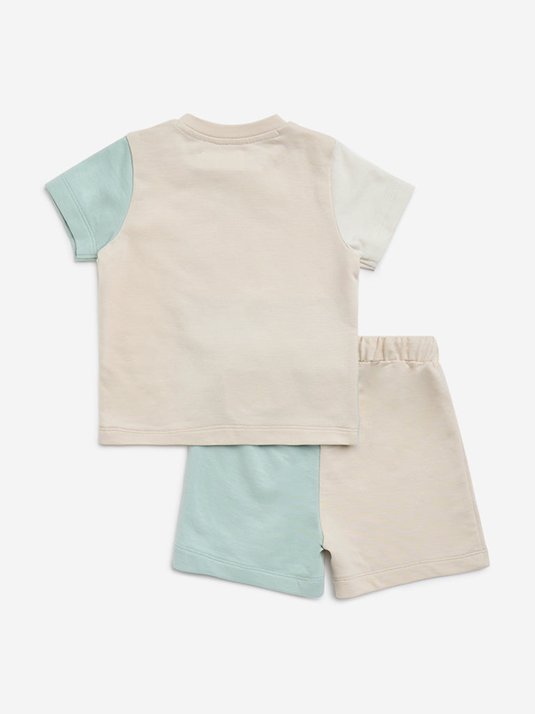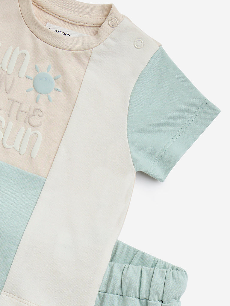 HOP Baby Sage Colour-Blocked Cotton T-Shirt with Shorts Set