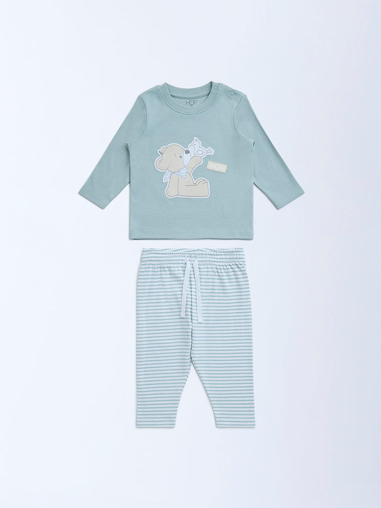 HOP Baby Sage Cotton T-Shirt with Pants Set