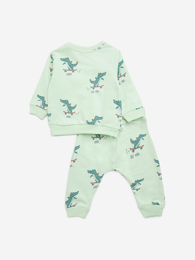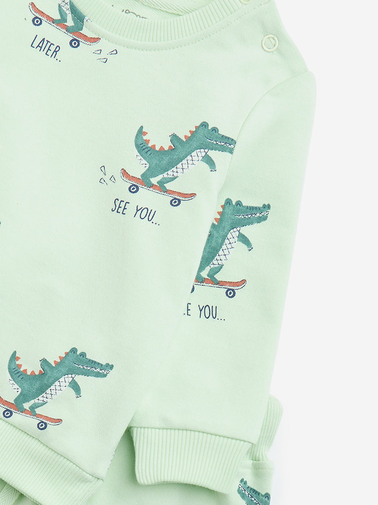 HOP Baby Sage Dinosaur Printed Cotton Sweatshirt with Joggers Set
