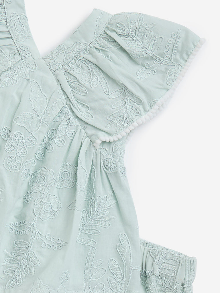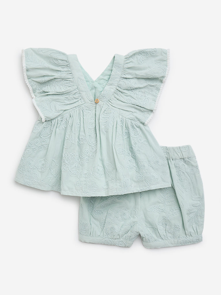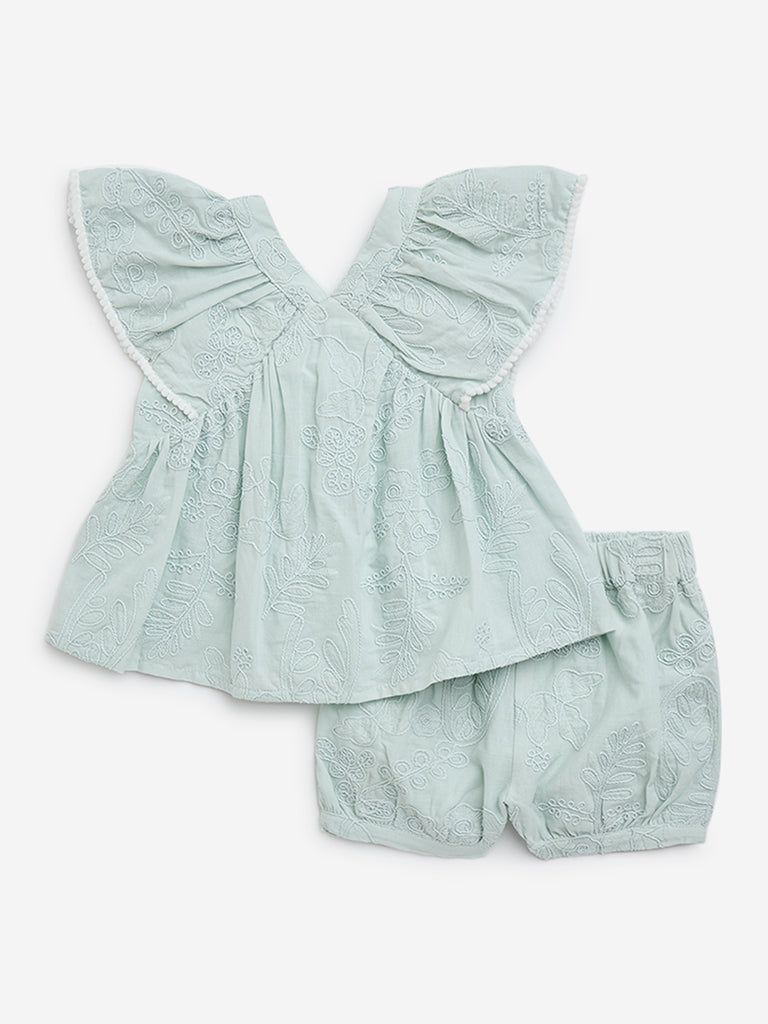 HOP Baby Sage Floral Embroidered Cotton Top with Shorts Set