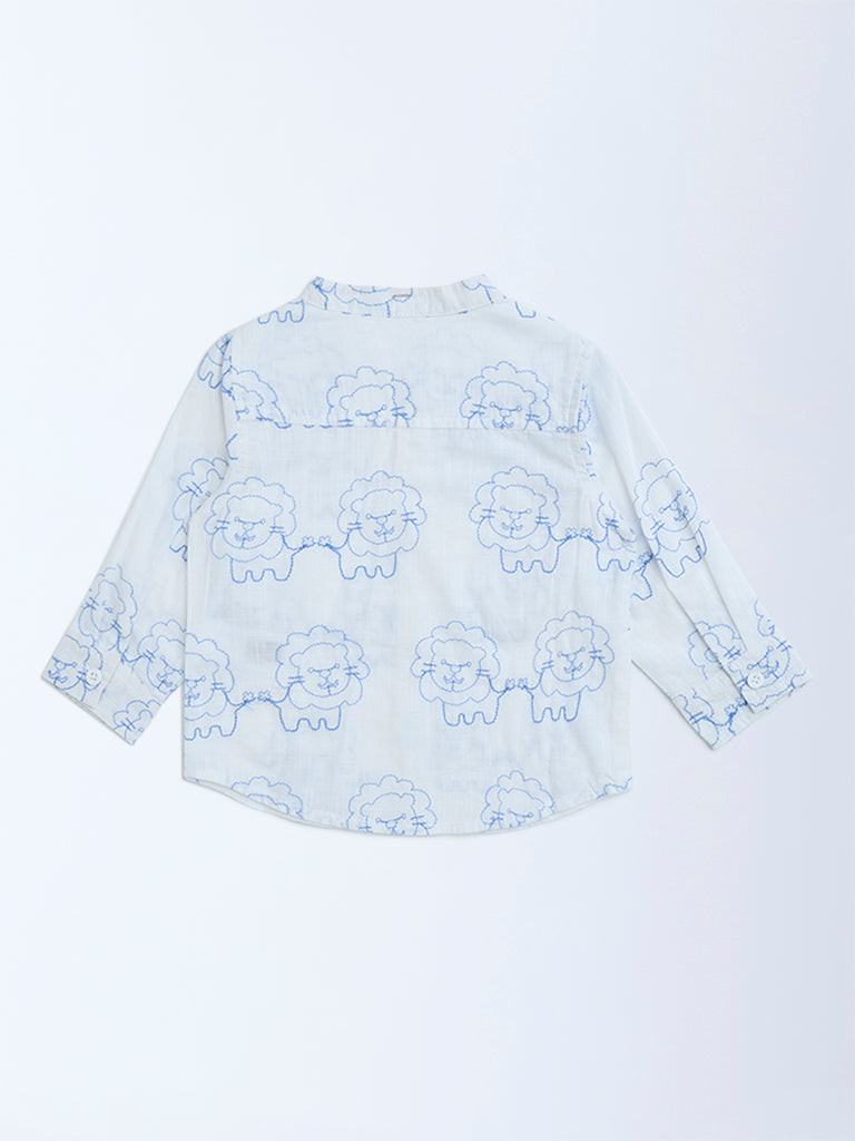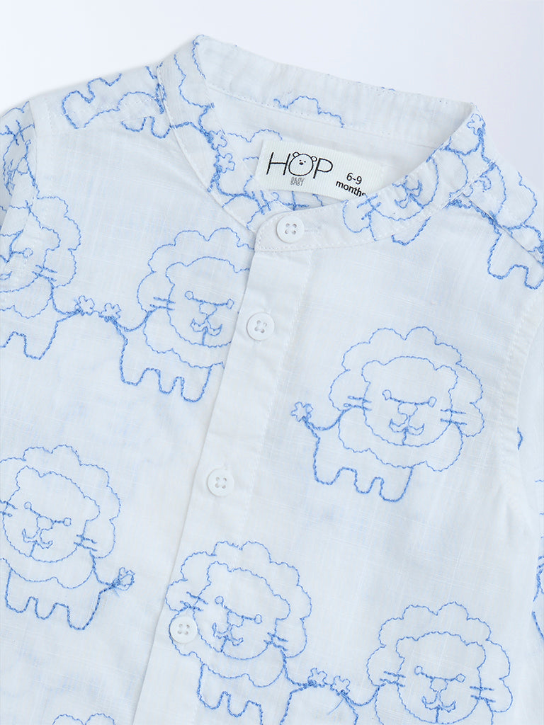 Adding charm to little wardrobes. this white shirt from HOP Baby features vibrant animal embroidery across the front. Designed with a band-neck collar. button-up front and full sleeves. it is crafted from pure cotton for a smooth. breathable feel that keeps babies comfortable all day.
