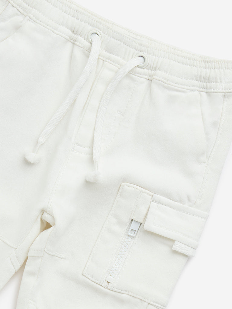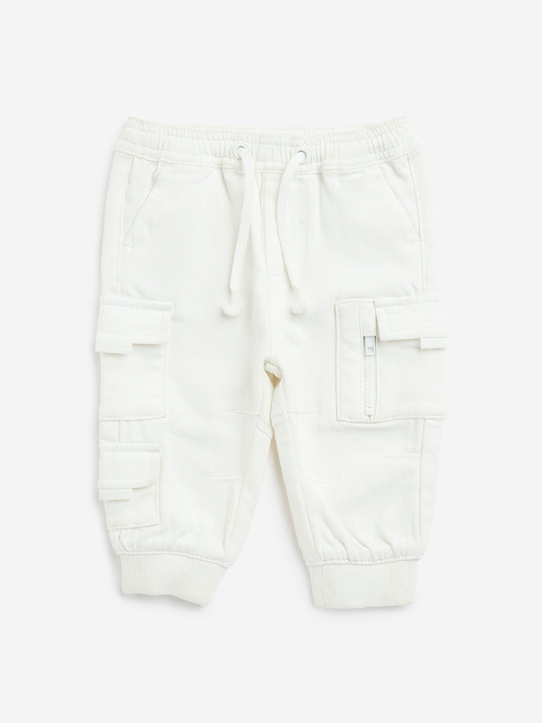 HOP Baby White Cargo-Style Mid-Rise Cotton-Blend Joggers