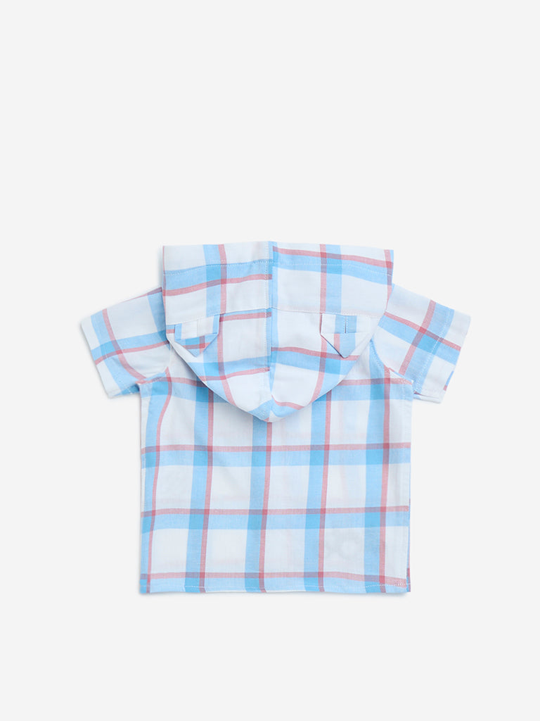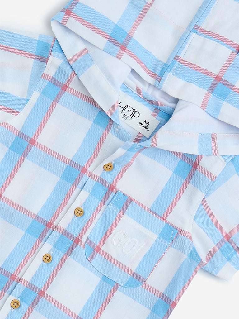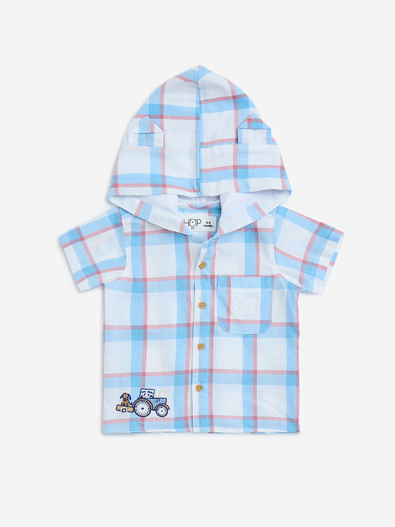 HOP Baby White Checkered Cotton Hooded Shirt