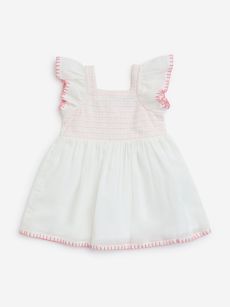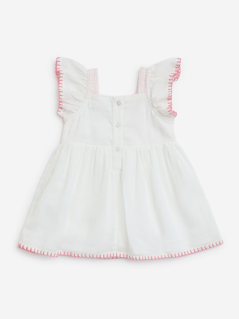 HOP Baby White Embroidered Cotton A-Line Dress