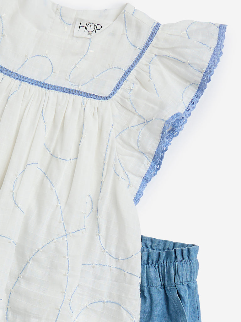 HOP Baby White Embroidered Cotton Top with Shorts Set