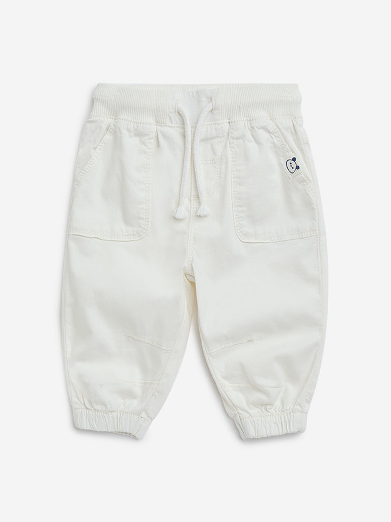 HOP Baby White Mid-Rise Cotton-Blend Joggers