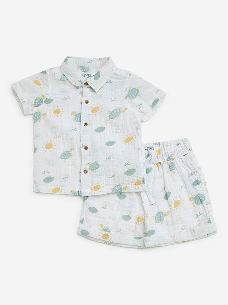HOP Baby White Printed Cotton Shirt and Shorts Set