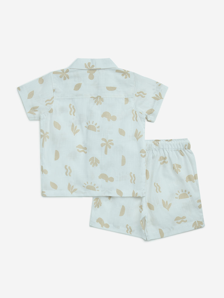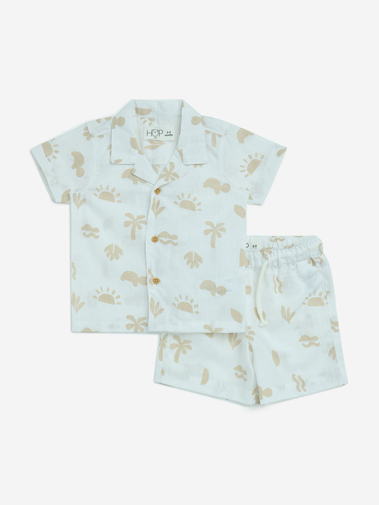 HOP Baby White Printed Cotton Shirt with Shorts Set