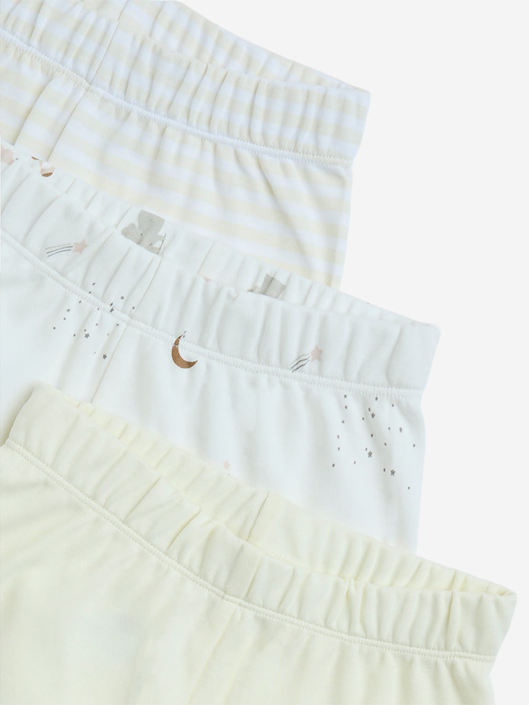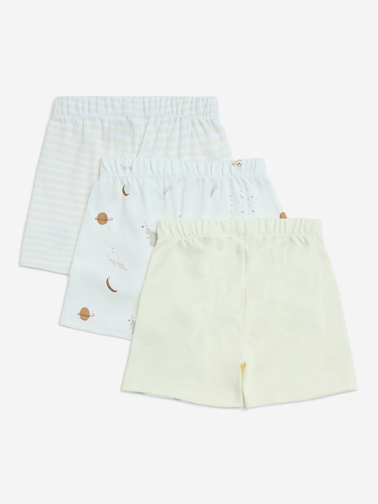 HOP Baby White Printed Cotton Shorts – Pack of 3