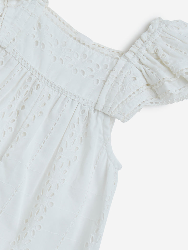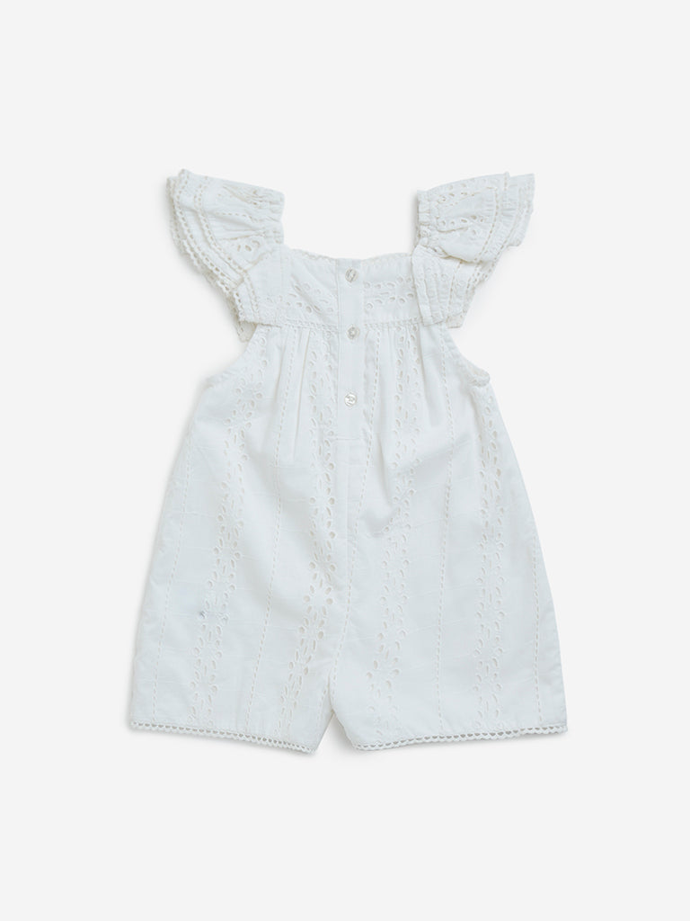 HOP Baby White Schiffli-Detailed Cotton Romper