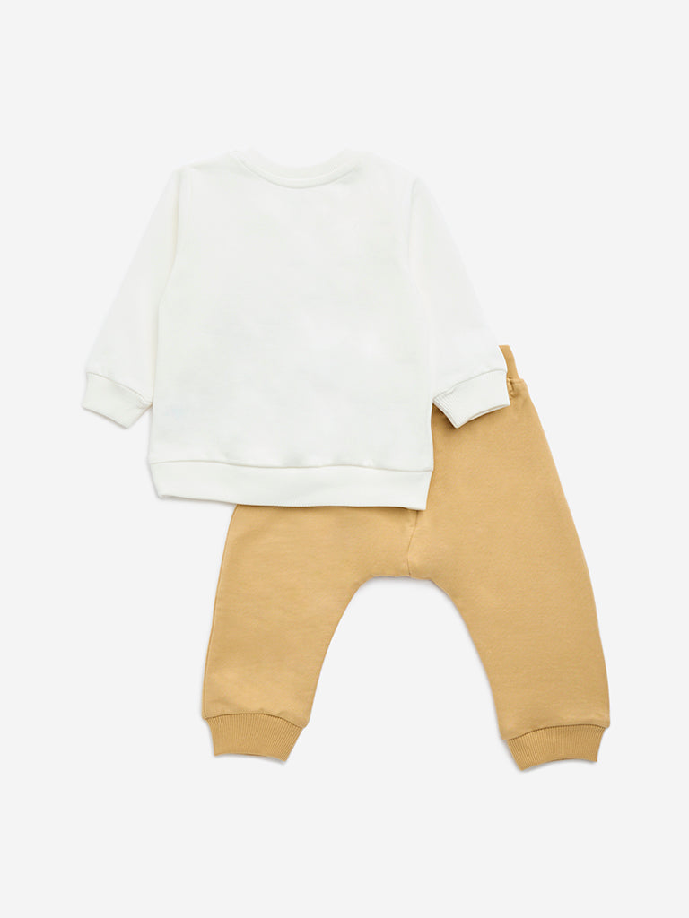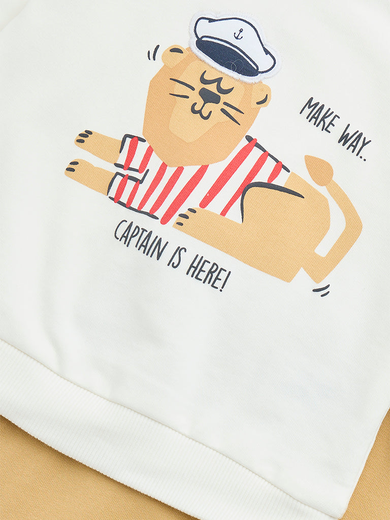 HOP Baby White Tiger Print Cotton Sweatshirt and Pants Set