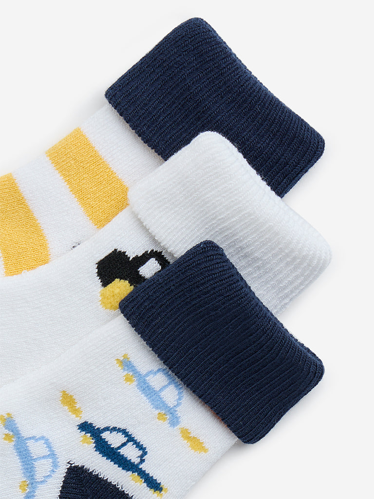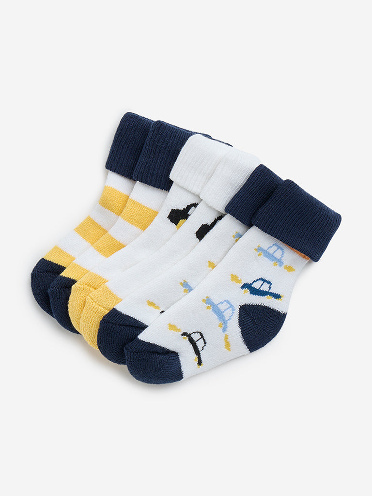 HOP Baby Yellow Car Printed Cotton-Blend Socks – Pack of 3