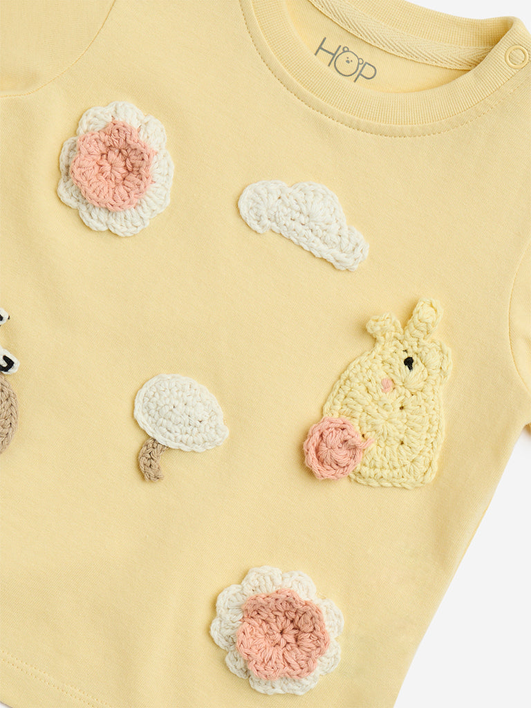 HOP Baby Yellow Crochet-Detailed Cotton T-Shirt
