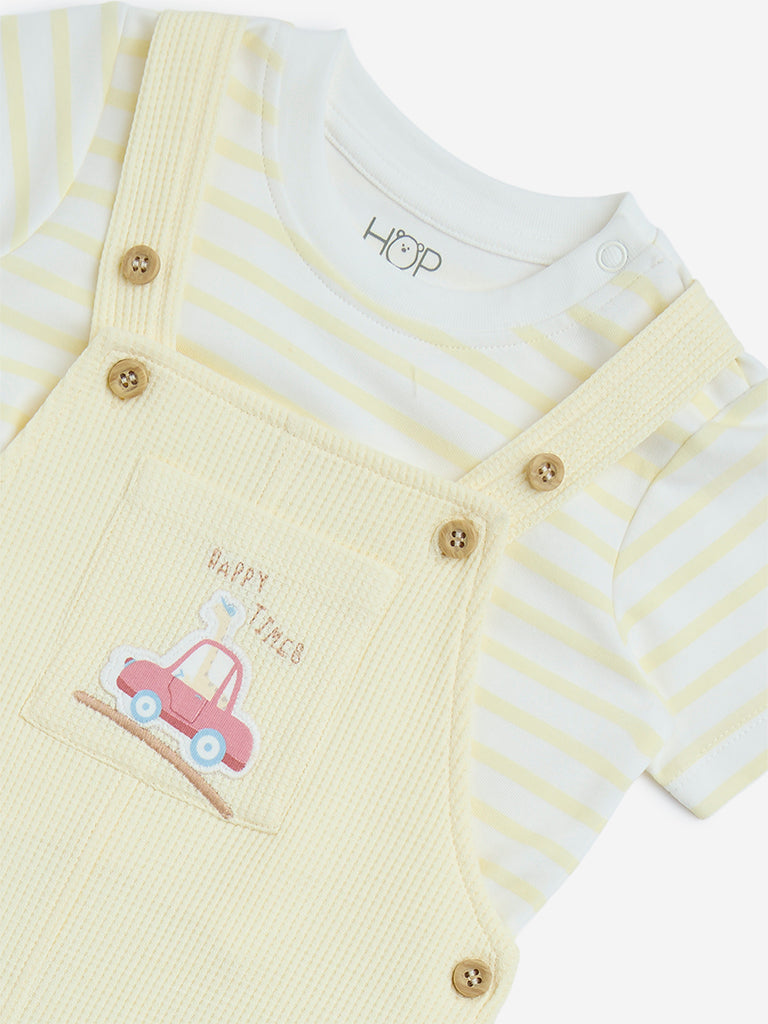 HOP Baby Yellow Embroidered Cotton Dungaree and T-Shirt Set