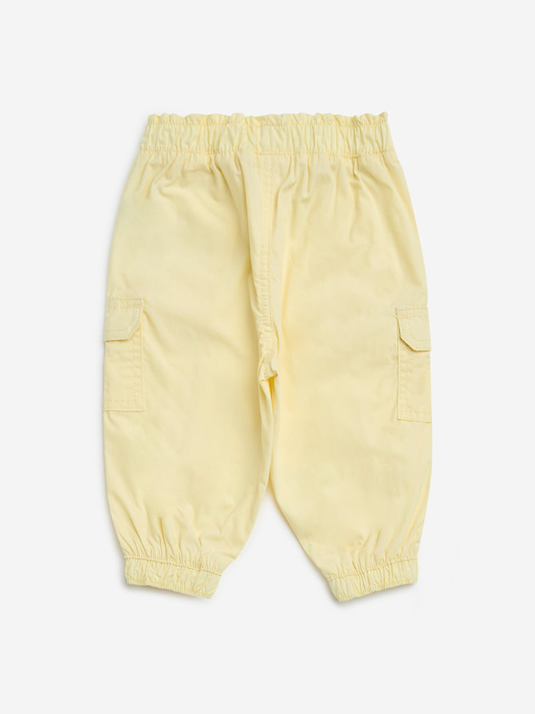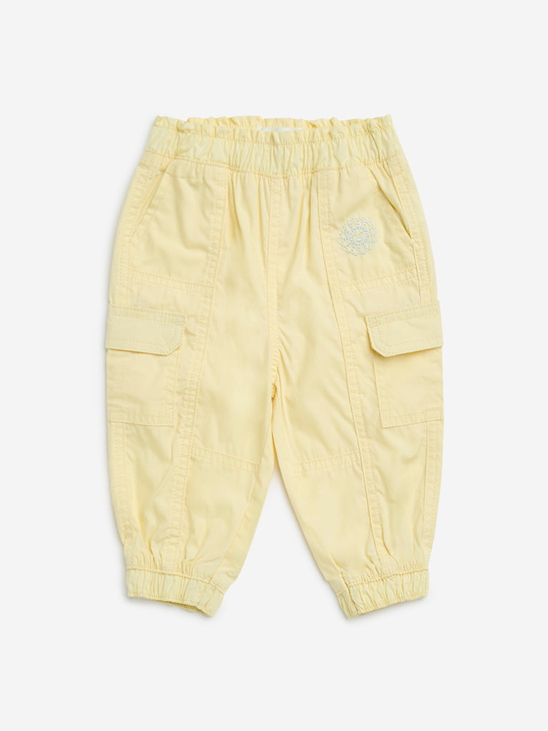 This pair of yellow joggers from HOP Baby is carved in a high-rise frame. tailored from pure cotton for a lightweight. airy feel. Designed with an elasticated waist for ease of movement. they feature multiple pockets. adding a functional touch to everyday dressing.