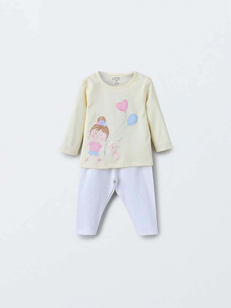 HOP Baby Yellow Printed Cotton T-Shirt with Pants Set