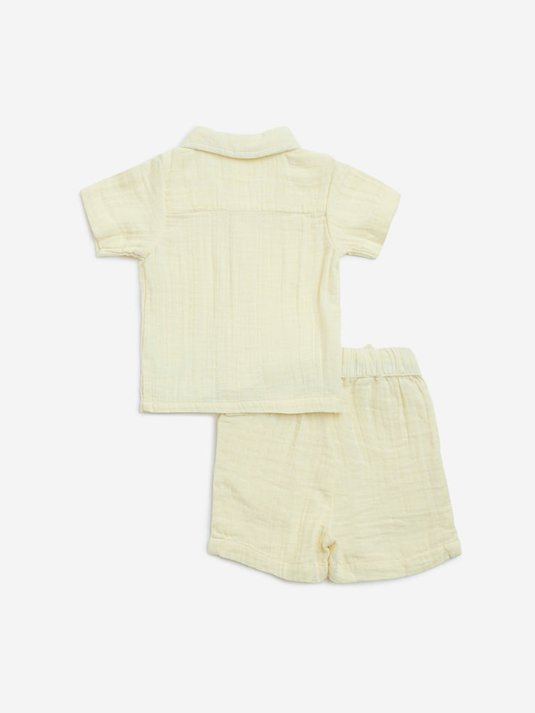HOP Baby Yellow Textured Cotton Shirt with Shorts Set