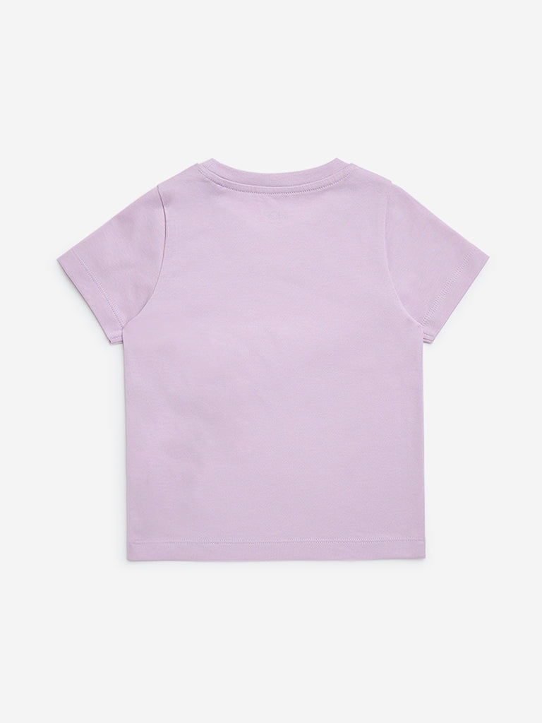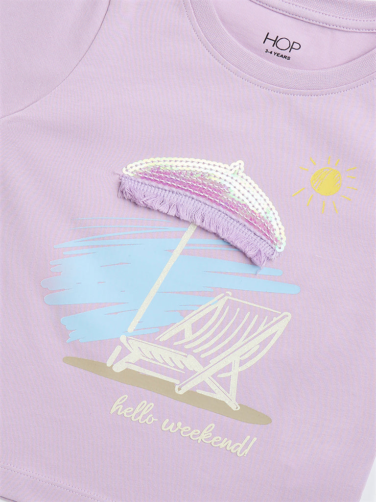 HOP Kids presents this lilac t-shirt. showcasing a sparkling sequined weekend-themed design at the front. Crafted from pure cotton for a soft feel. it is finished with a classic round neck and short sleeves. making it a charming pick for casual days.