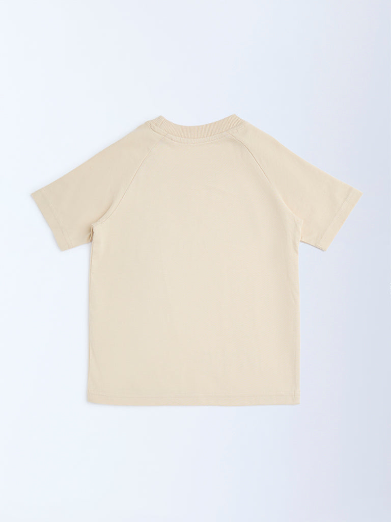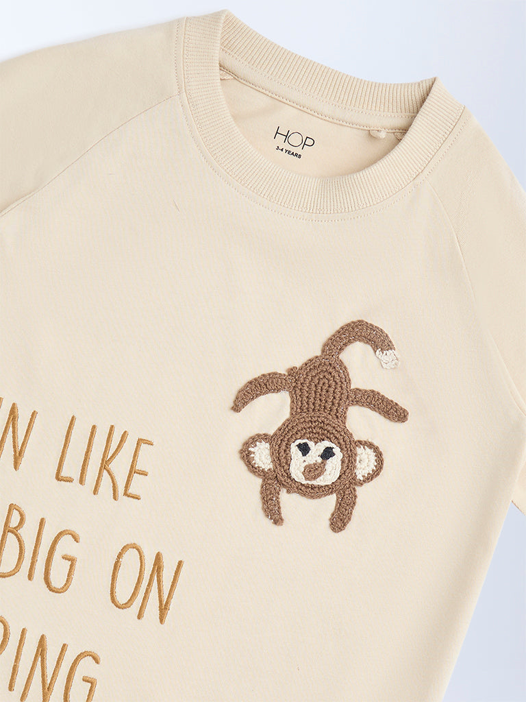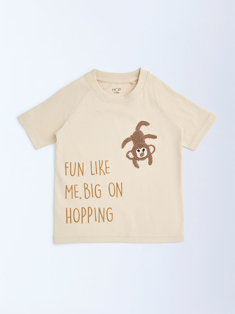 HOP Kids Beige Animal Design Cotton T-Shirt