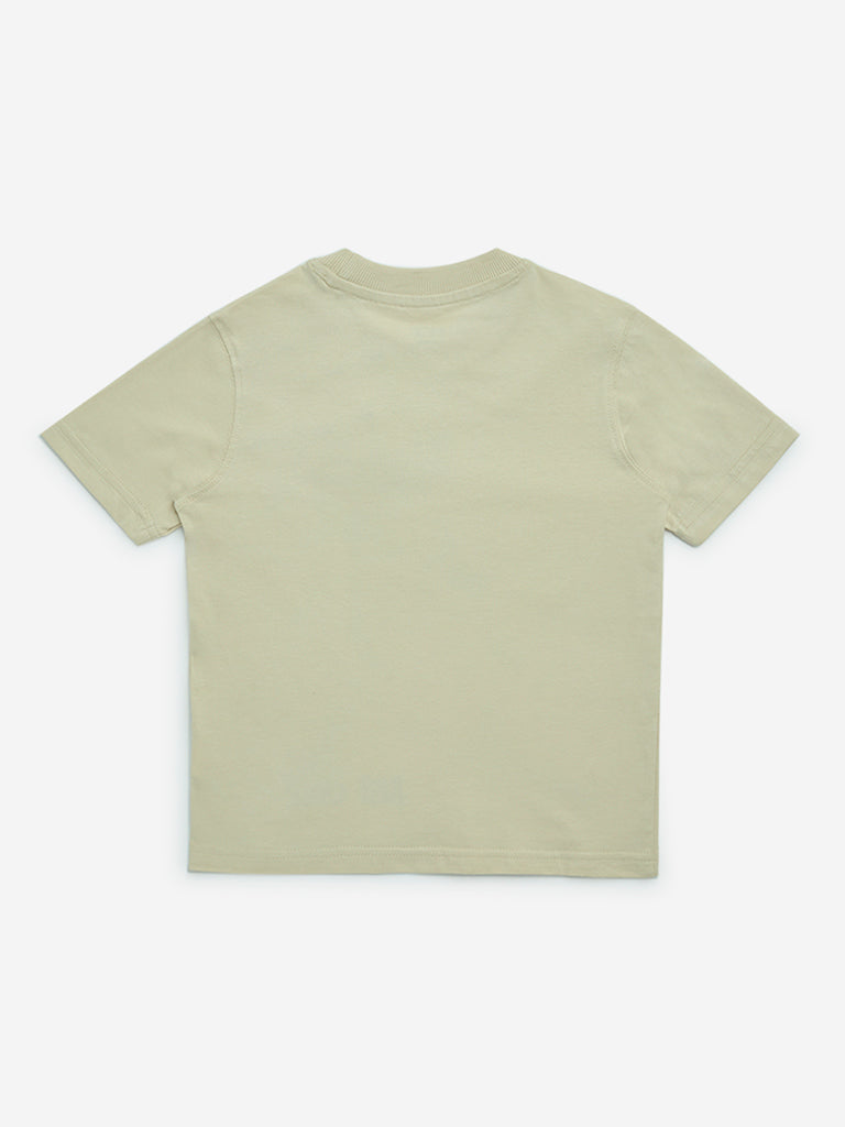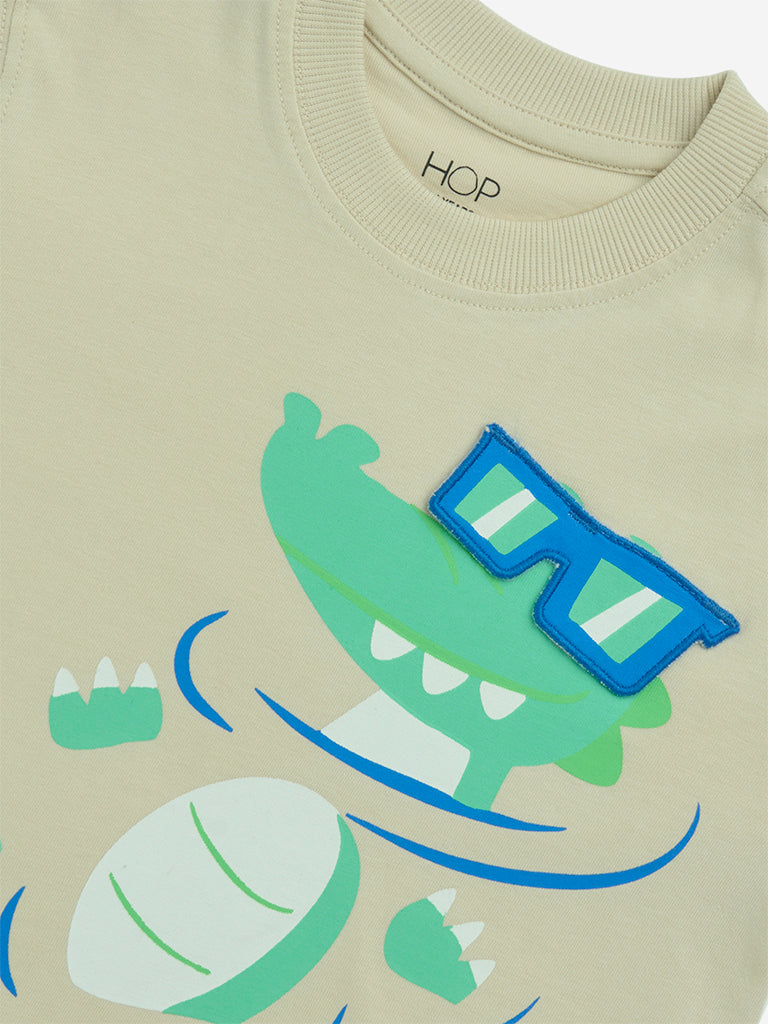HOP Kids Beige Animal Printed Cotton T-Shirt