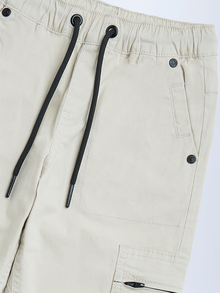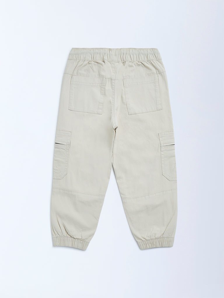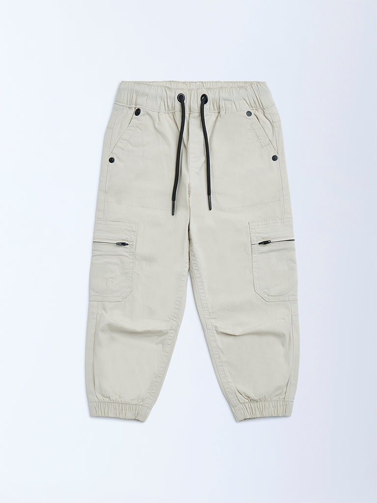HOP Kids Beige Mid-Rise Cotton Joggers