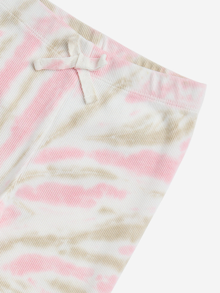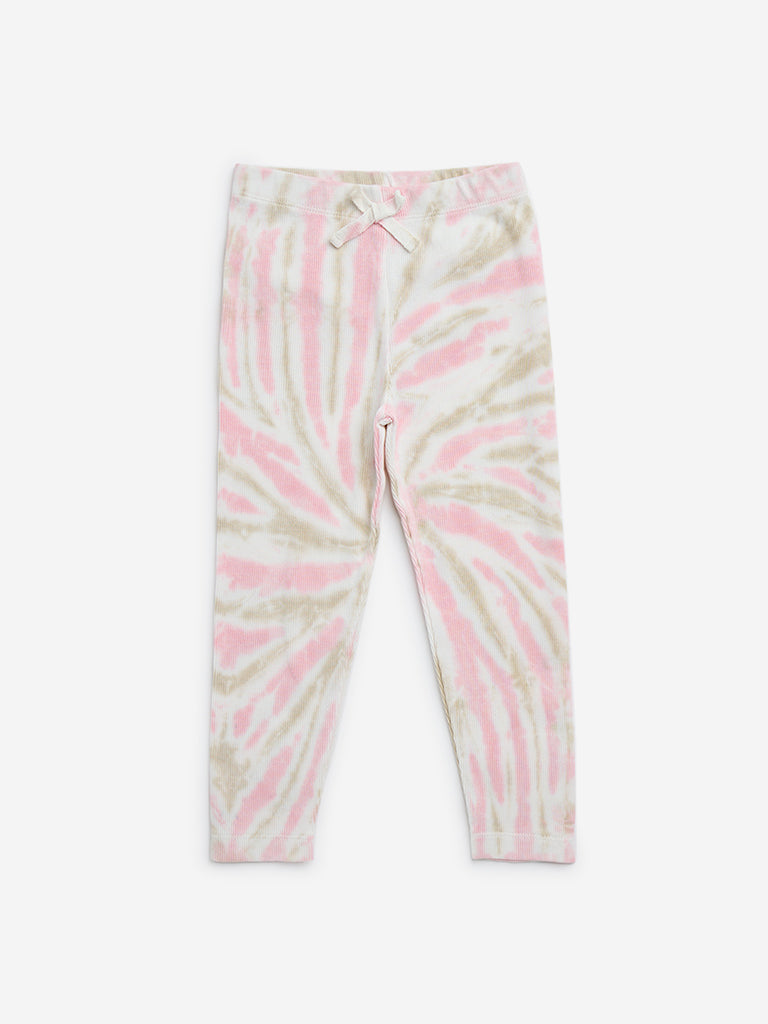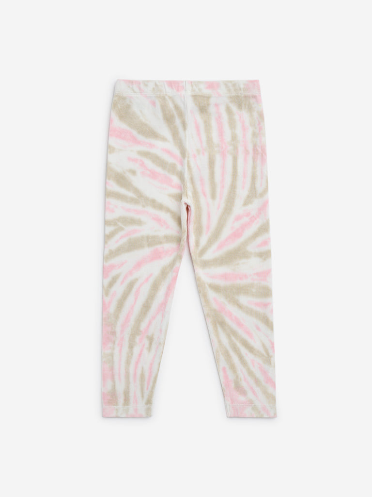 HOP Kids Beige & Pink Tie-Dye Cotton-Blend Leggings