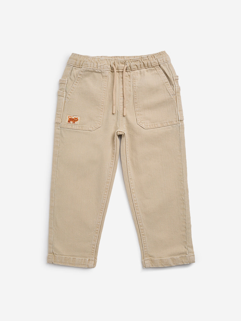 HOP Kids Beige Relaxed-Fit Mid-Rise Jeans