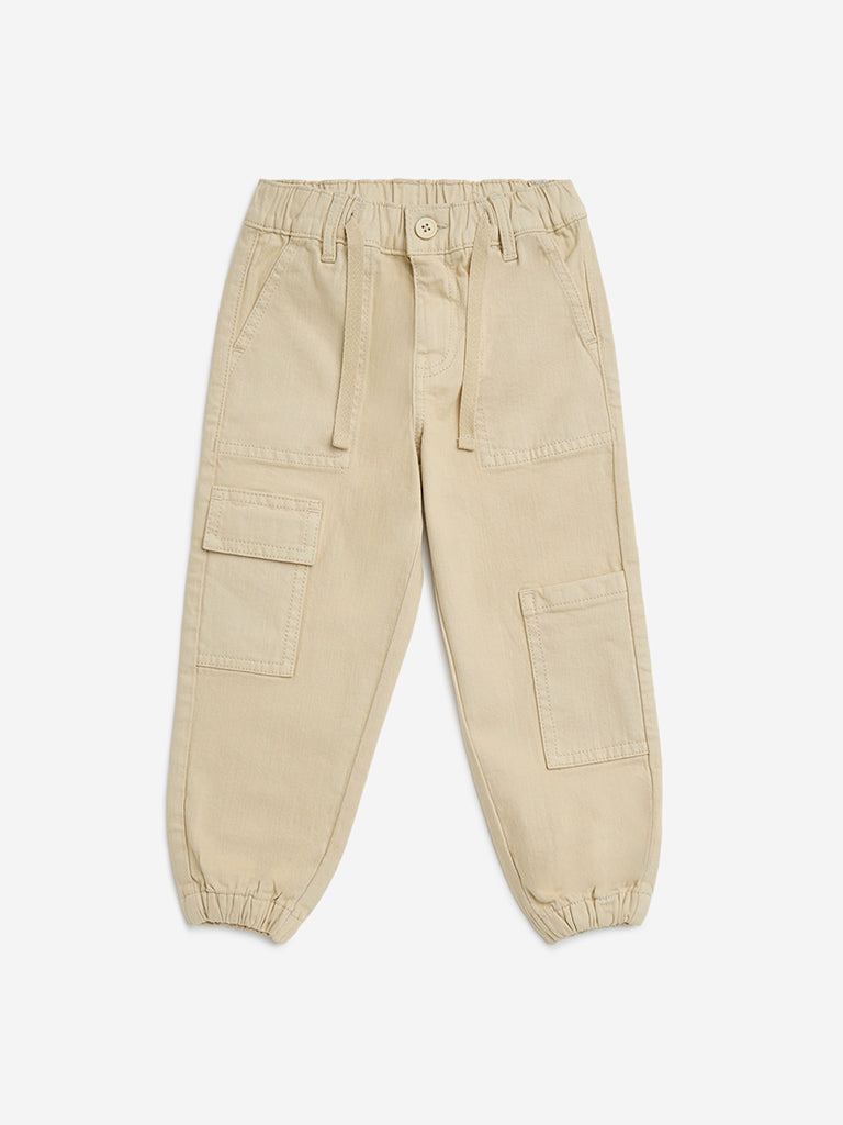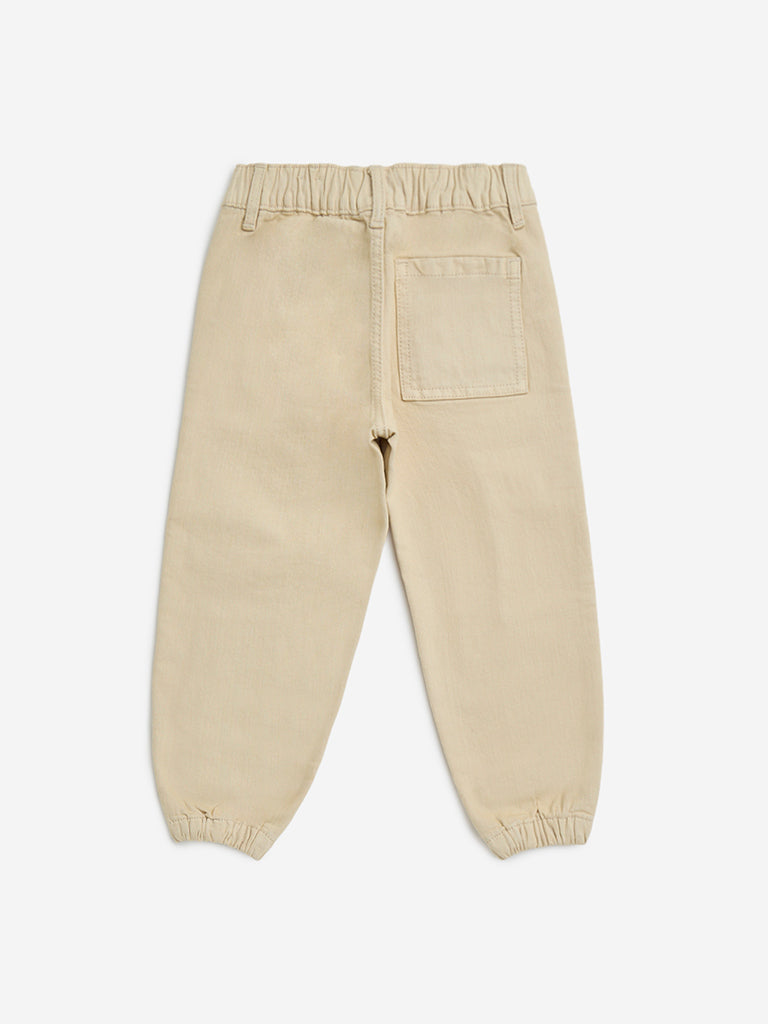 HOP Kids Beige Relaxed-Fit Mid-Rise Jogger-Style Jeans