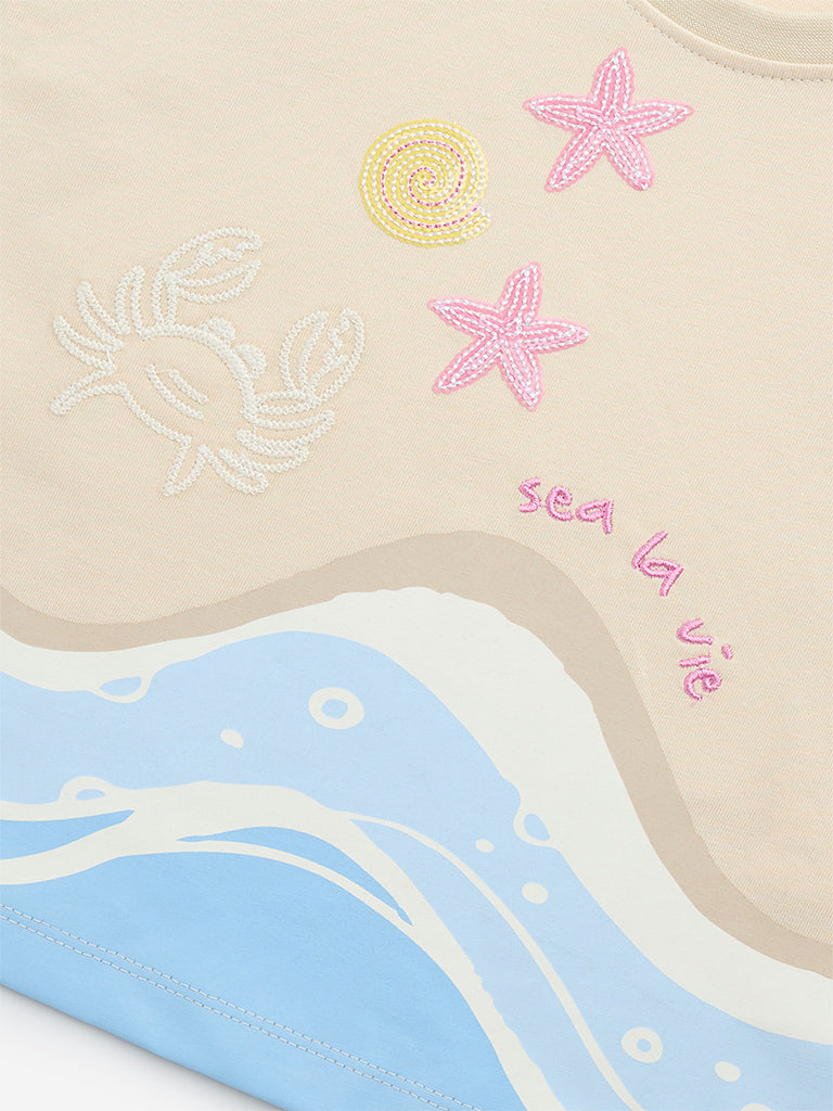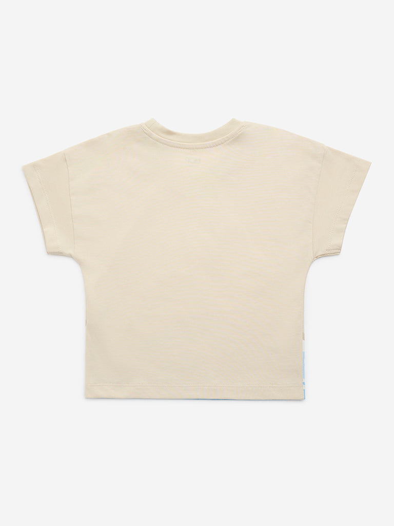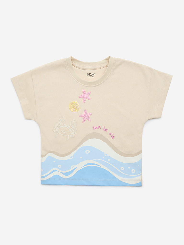 HOP Kids Beige Sea-Themed Cotton T-Shirt