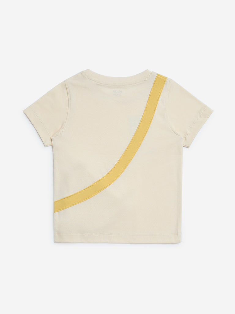 HOP Kids Beige Sequin Embellished Cotton T-Shirt