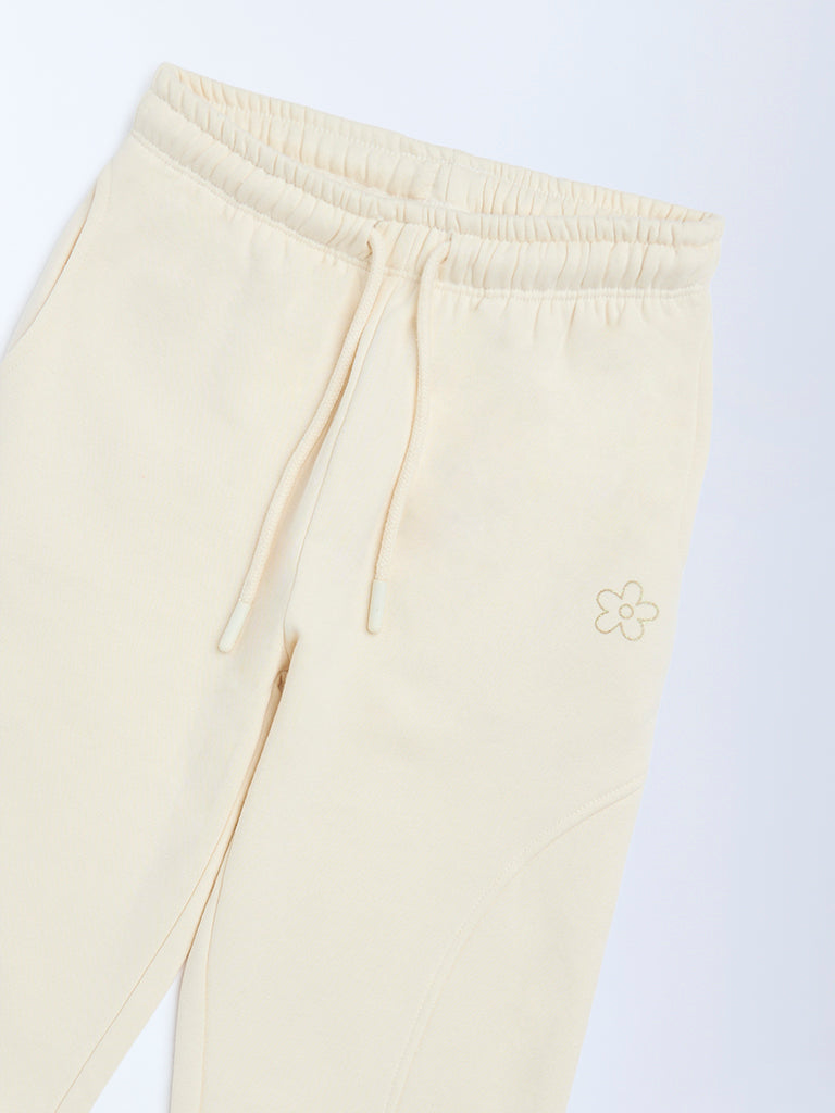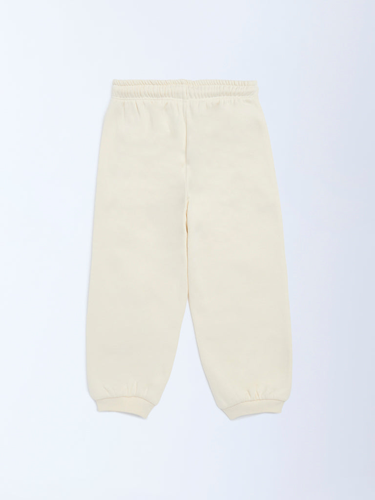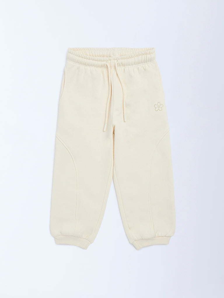 HOP Kids Beige Solid High-Rise Cotton-Blend Joggers