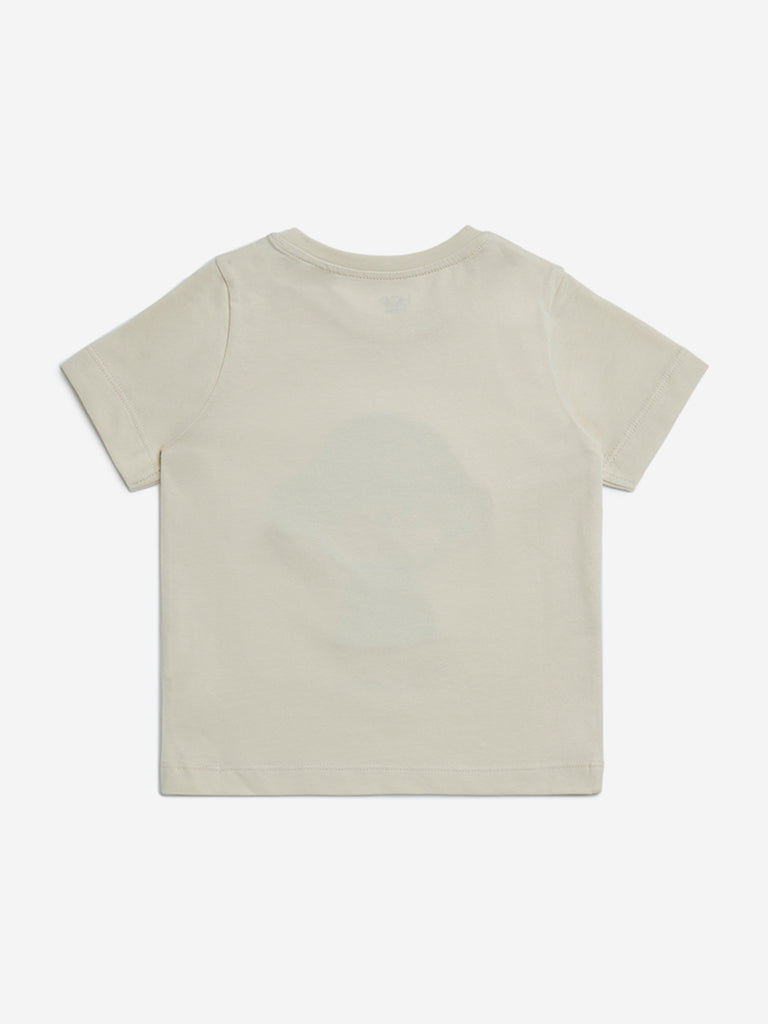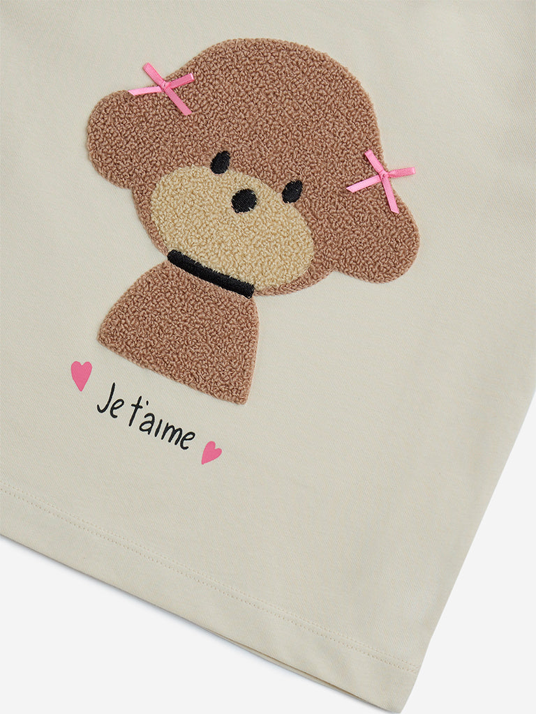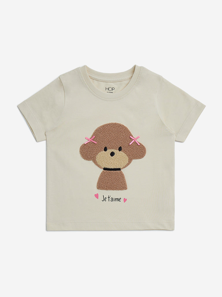 HOP Kids Beige Teddy Bear Design Cotton T-Shirt