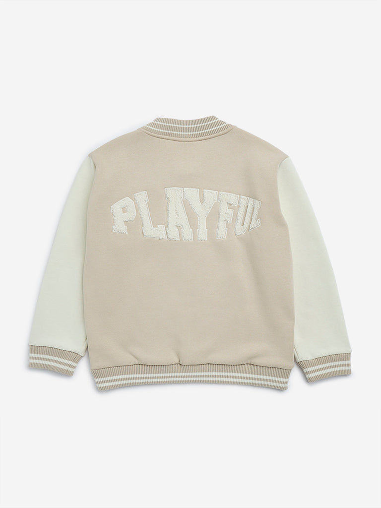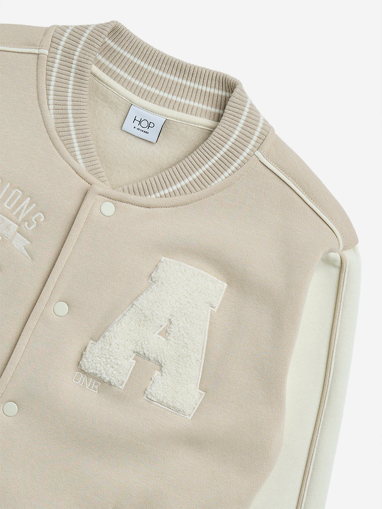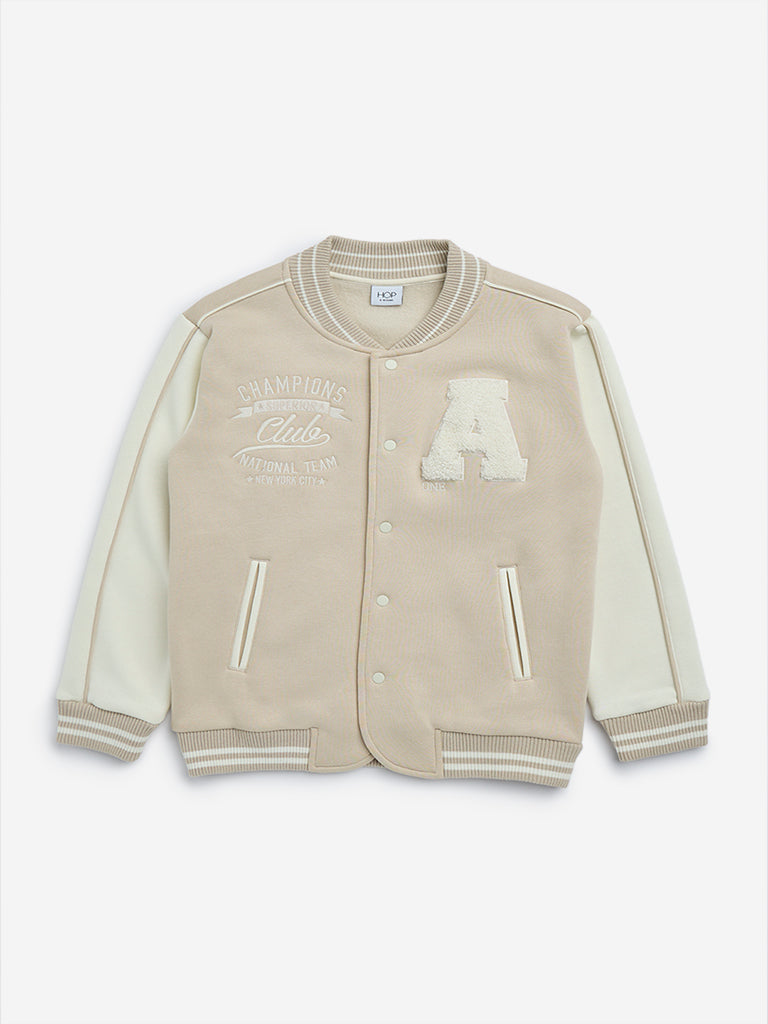 HOP Kids Beige Text Design Cotton-Blend Varsity Jacket
