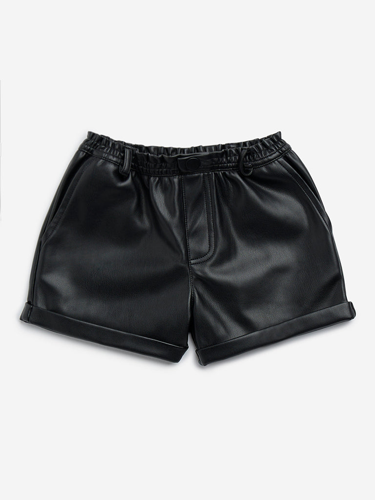 Be the first to review “HOP Kids Black Faux Leather High-Rise Shorts”