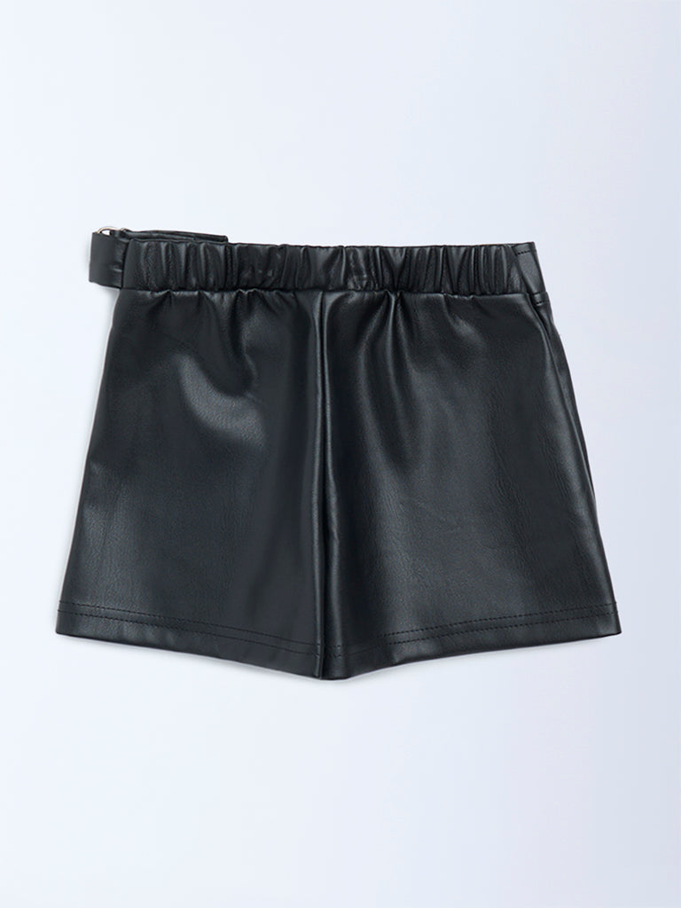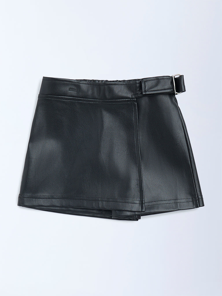 This black skort from HOP Kids brings a fun. modern twist to your child’s wardrobe with its cool faux-leather finish. The elasticated waistband keeps it comfy through active days. while the front buckle detail adds a stylish touch kids will love. Perfect for playdates. parties or dressing up a favourite tee.