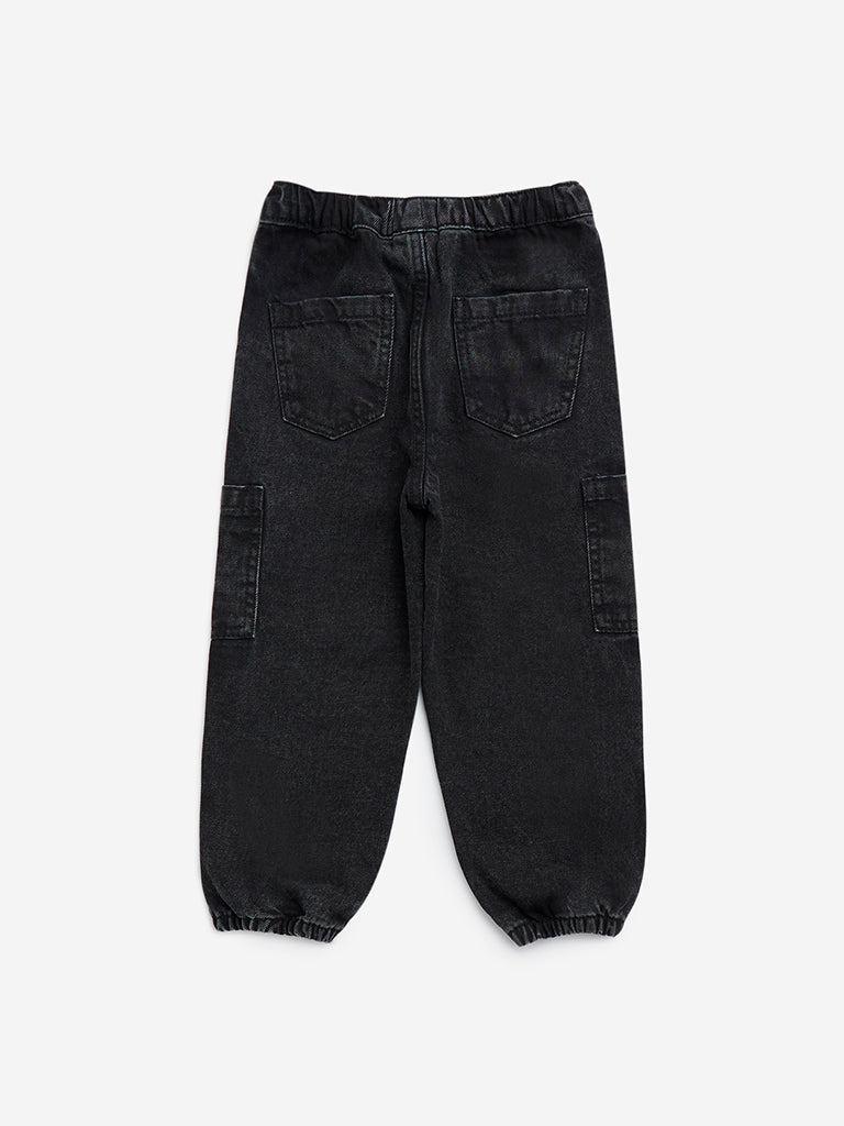 HOP Kids Black Mid-Rise Cargo-Style Joggers