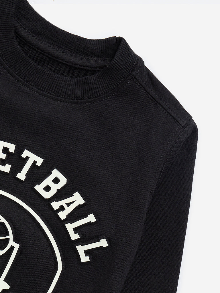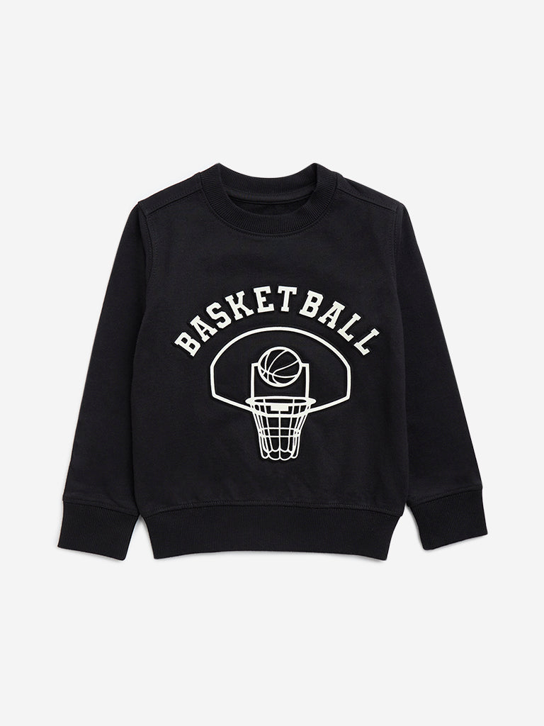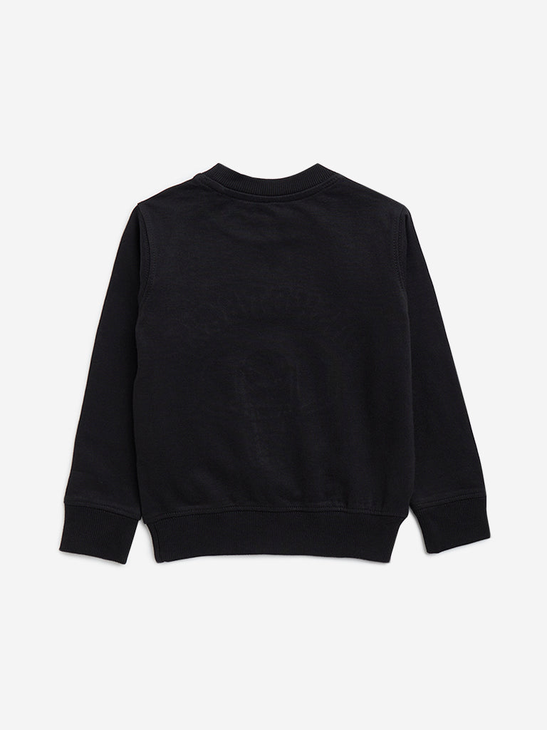 HOP Kids Black Typographic Print Cotton Sweatshirt