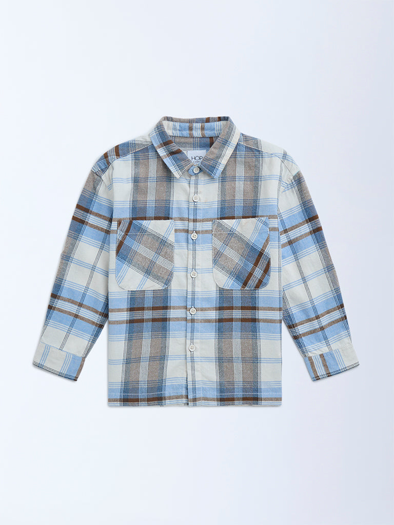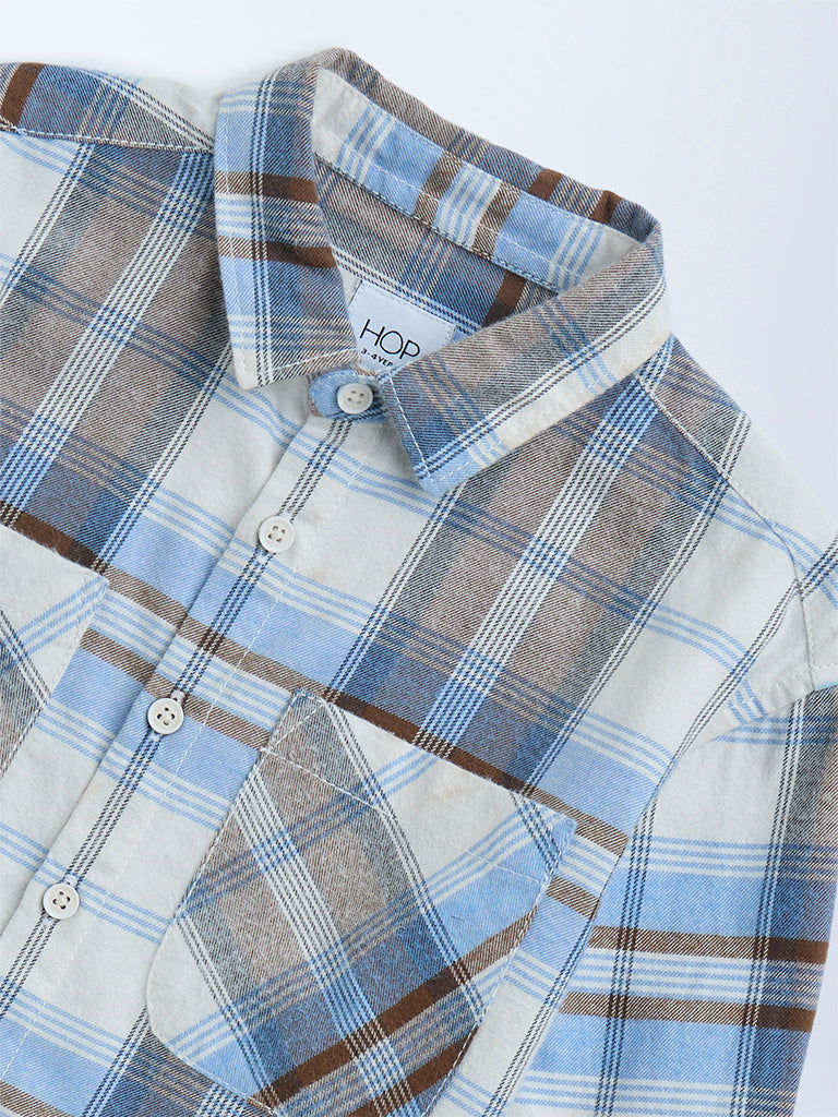 HOP Kids Blue Checkered Cotton Shirt