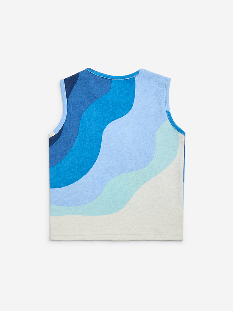 HOP Kids presents this blue t-shirt. defined by striking wavy prints. highlighting a tropical motif for a playful. summery touch. This pure cotton fabric is fitted with a round neckline. in a sleeveless profile. making it a perfect pick for sunny-day outings.