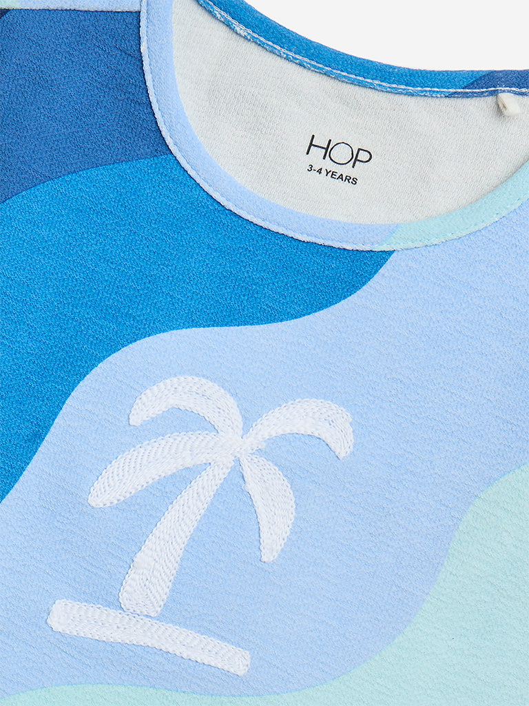HOP Kids Blue Colour-Blocked Cotton T-Shirt