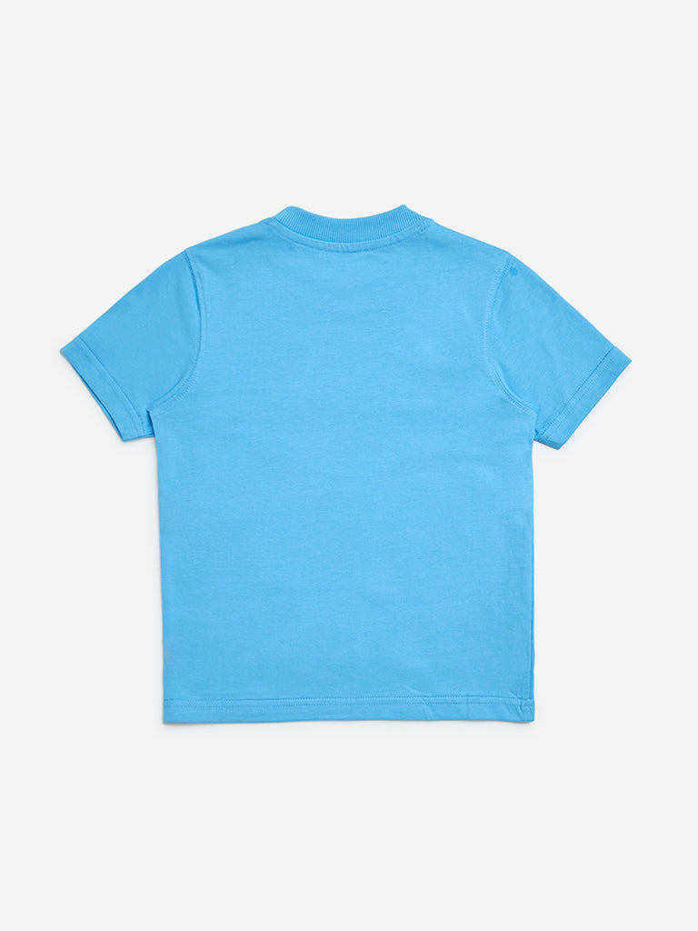 HOP Kids Blue Dinosaur-Themed Cotton T-Shirt