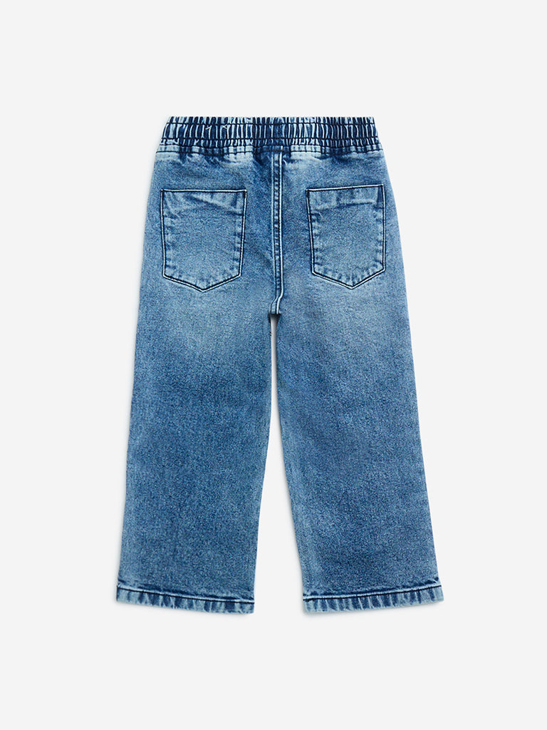 HOP Kids Blue Faded Relaxed-Fit High-Rise Jeans