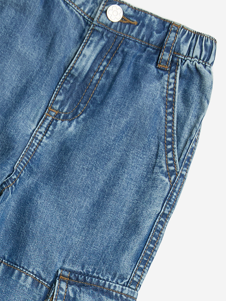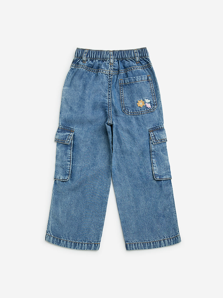 These blue jeans from HOP Kids are constructed from a breathable fabric for all-day comfort. Designed with delicate embroidery for a charming touch. they feature a buttoned waistband with belt loops. a secure zipper fly. and multiple roomy pockets for added functionality.