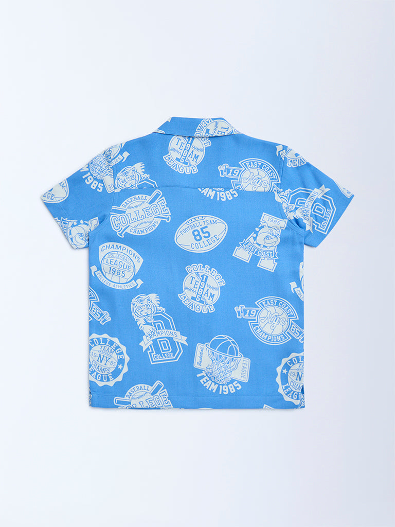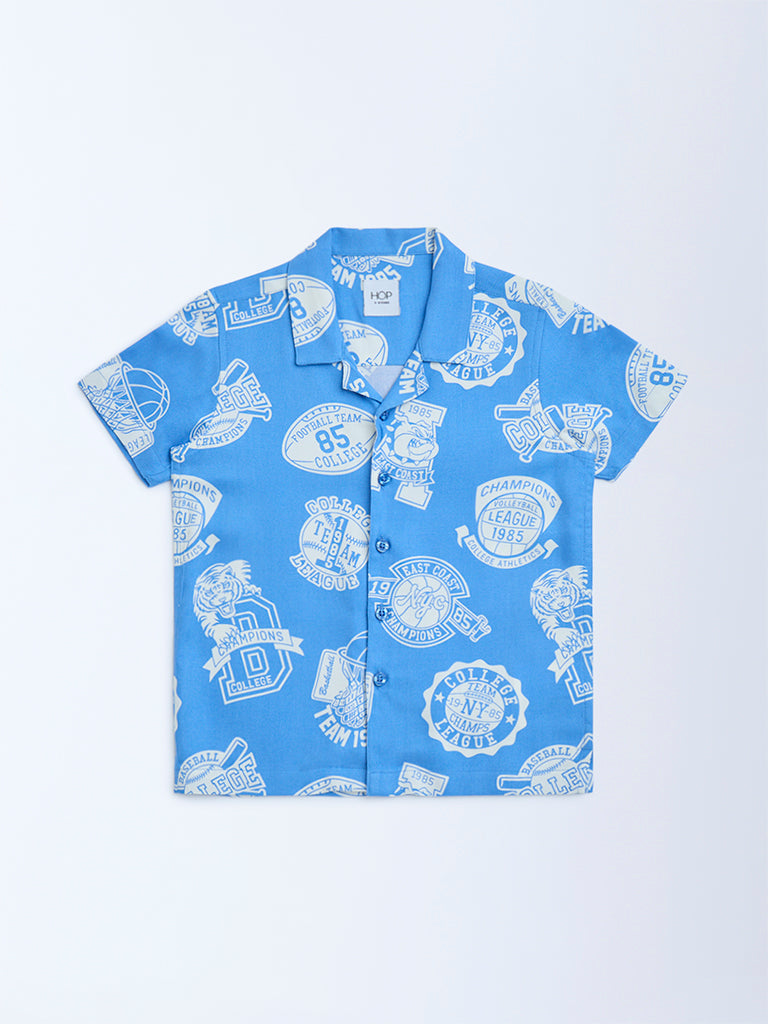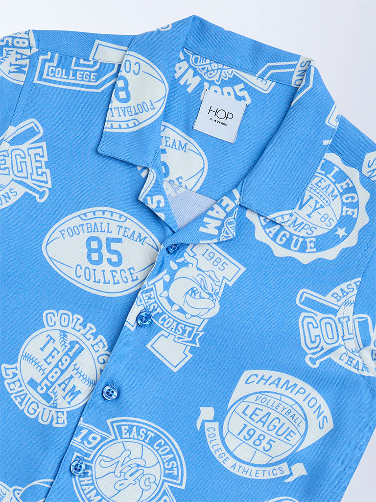 This blue shirt from HOP Kids is a sporty addition to your little one’s wardrobe. Spun from high-quality fabric. it’s covered in playful football-themed prints that bring in all the fun. Designed with a camp collar. short sleeves. and a button placket. it’s perfect for casual days and match-day vibes alike.