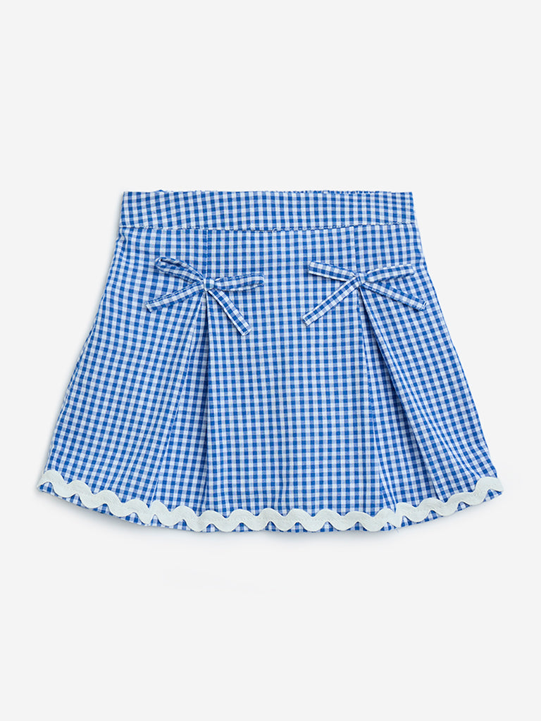 HOP Kids Blue Gingham Checks Design High-Rise Cotton Skirt
