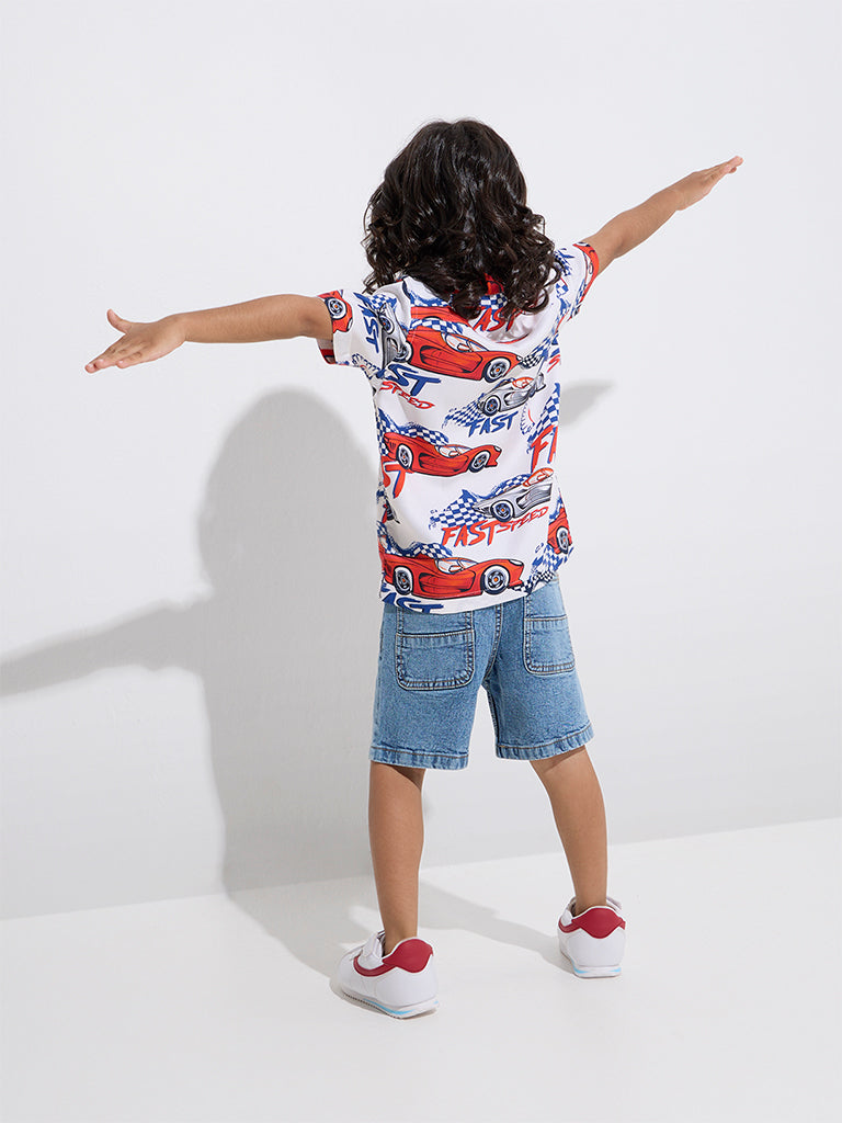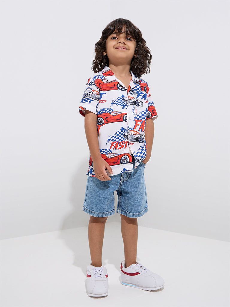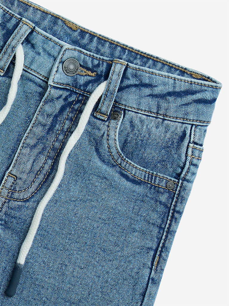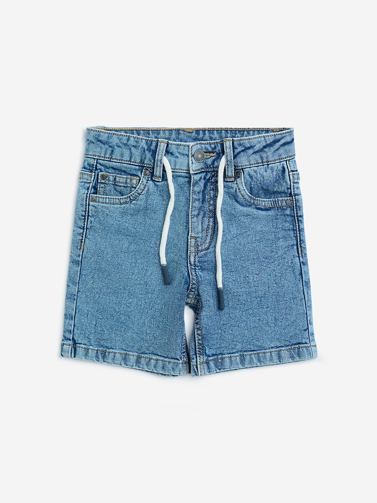 These blue denim shorts from HOP Kids are a must-have for casual days. Made from pure cotton. they feature a mid-rise silhouette with a smooth buttoned waistband. adjustable drawstrings. and belt loops for a secure fit. Multiple pockets complete the look with a practical touch.
